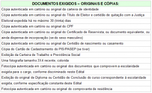 T1 DOCUMENTOS EXIGIDOS – ORIGINAIS E CÓPIAS